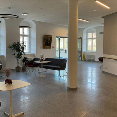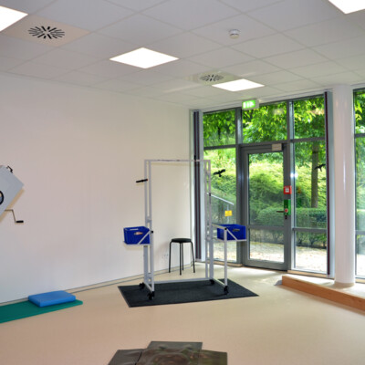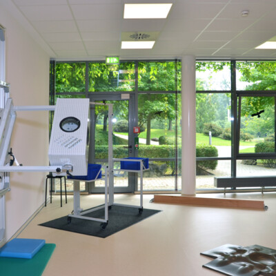 Durch die Außerbetriebnahme der seit Jahren stark rückläufig genutzten Kegelbahn bestand die Möglichkeit einen modernen Mehrzwecktherapiebereich mit Gangschule, Ergotherapie und Tele-Reha-Nachsorge zu integrieren. Außerdem wurde die Caféteria auf ihrer vorhandenen Fläche neu organisiert, indem sie einen modifizierten Kioskbereich erhielt und der Freizeitbereich integriert wurde. /