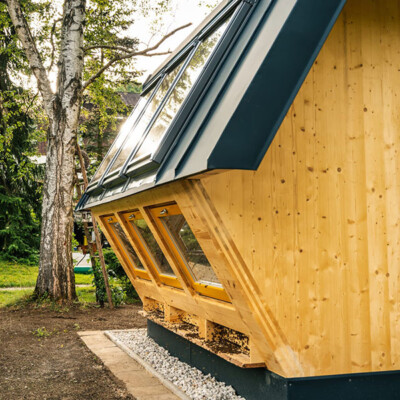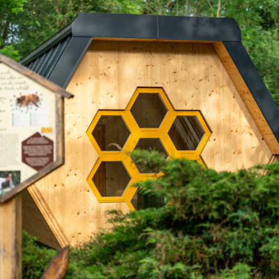 2023-2024 Neubau Apitherapie Crottendorf / Die Apitherapie gilt als eine alternative Form der Medizin. Das Einatmen der Bienenstockluft hat eine positive Wirkung auf den menschlichen Körper. In der Apitherapiestation stehen mehrere Bienenstöcke, die nur nach außen geöffnet sind. Somit haben die Patienten keinen Kontakt zu den Bienen. Die Luft wird aus dem Bienenstock durch spezielle Anschlüsse abgesaugt und zu einer Inhalationsmaske geleitet, ohne die Bienen dabei zu stören.