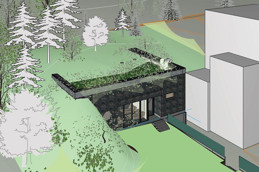 2021-2023 Neubau Gärtnerhaus - Kurgesellschaft Schlema mbH / Das für die gärtnerische Bewirtschaftung des Kurhauses und seiner Außenanlagen errichtete Betriebsgebäude bietet im Erdgeschoss Platz für Garagen, Werkstatt- und Lagerräume. Im Obergeschoss sind die Sozialräume und ein Aufenthaltsraum untergebracht; zugleich dient es als Winterquartier für die Außenpflanzen / BGF: 1.496m² / Baukosten: KG 300/400/600 - 1.420.000/195.000/53.000 € netto / Leistungsphase: Generalplanung, LPH 1-8 / Bauzeit: Oktober 2021 bis Juli 2023
